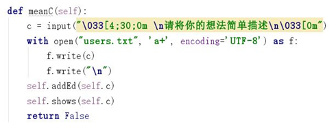 c = input("\033[4;30;0m \n请将你的想法简单描述\n\033[0m")