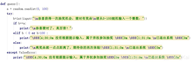 print("\033[4;30;0m 没有根据提示输入,属于弃权参加抽奖\033[0m \033[1;31;0m \n已退出系统 \033[0m")