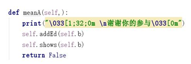 print("\033[1;32;0m \n谢谢你的参与\033[0m")