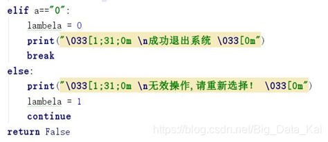 print("\033[1;31;0m \n成功退出系统 \033[0m")