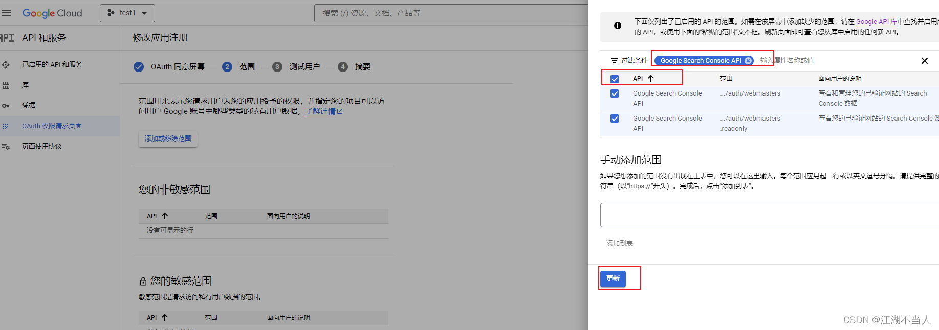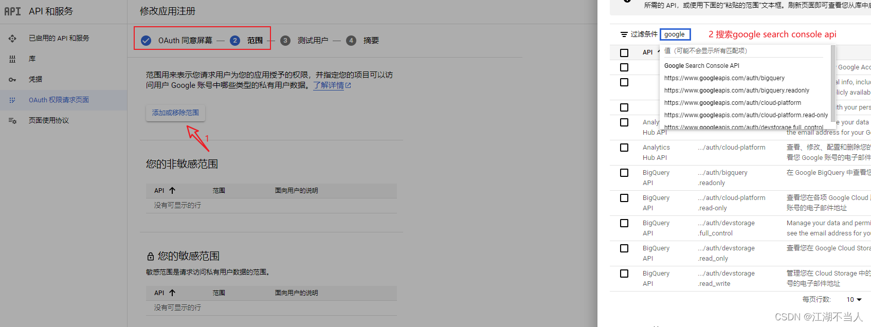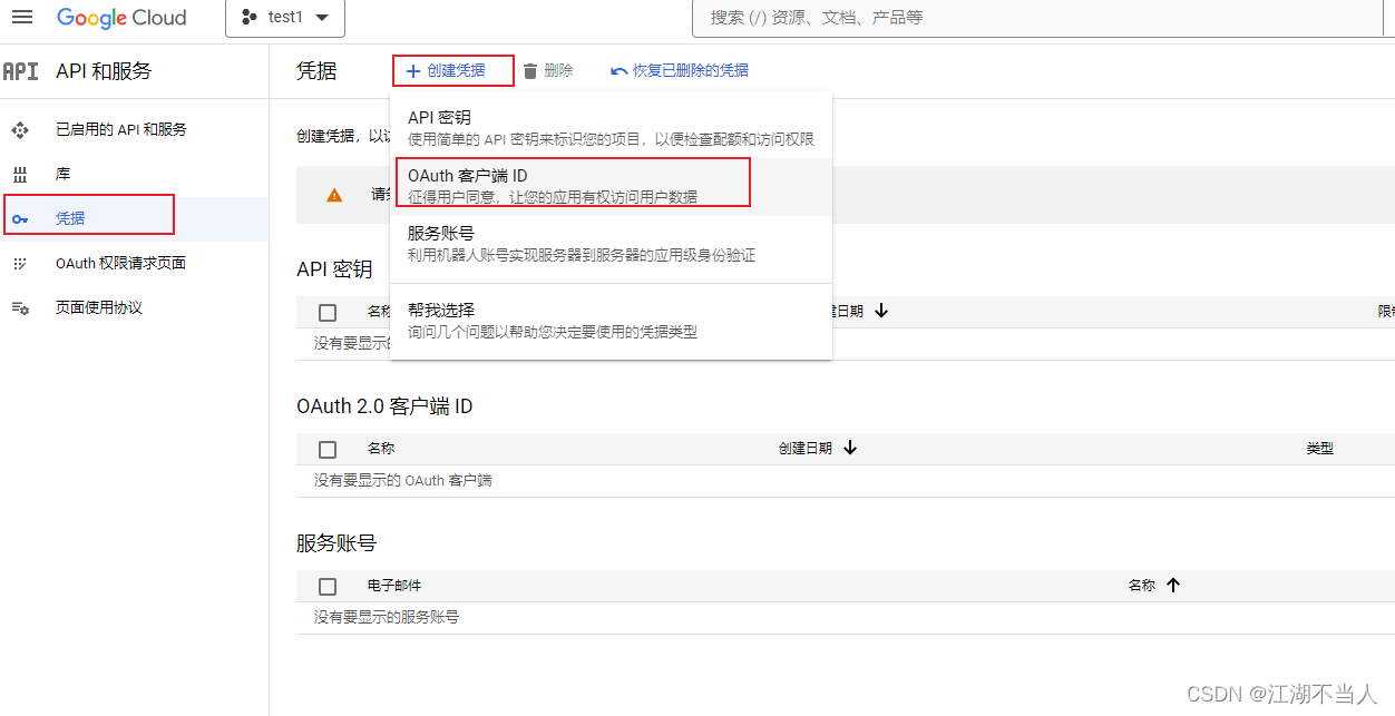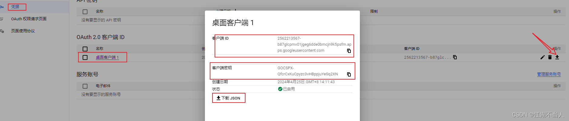 注意:想要调用 google search console 中的数据,无法通过API密钥获取,我是通过 OAuth客户端获取的。
