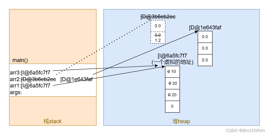虚拟机栈:用来存放方法中声明的变量(数组名)