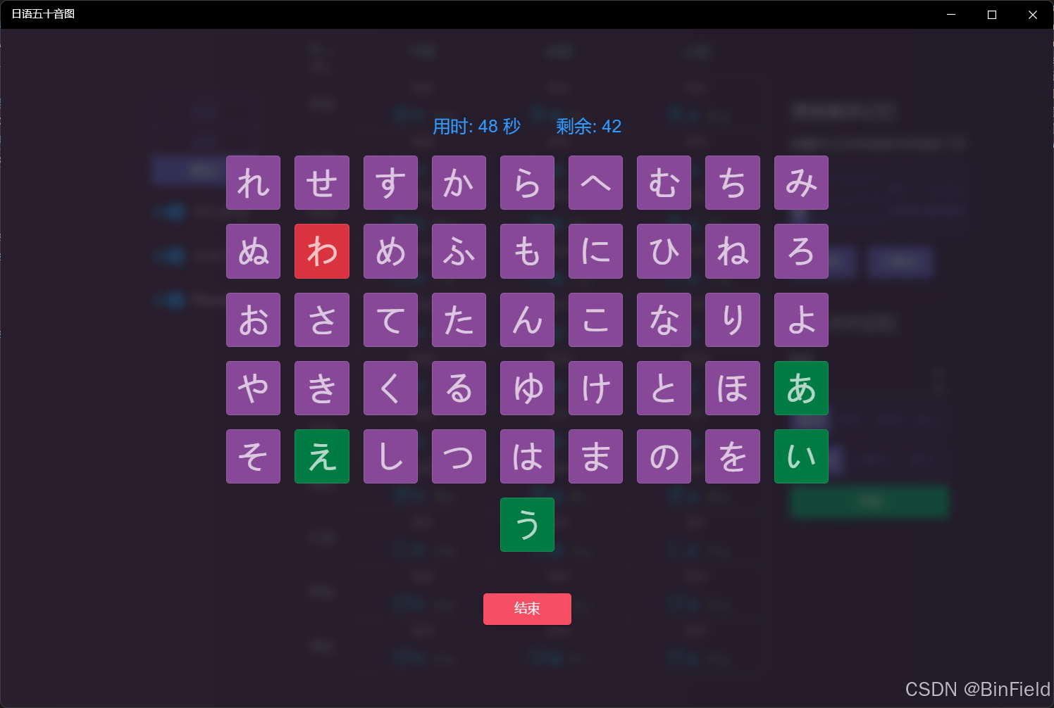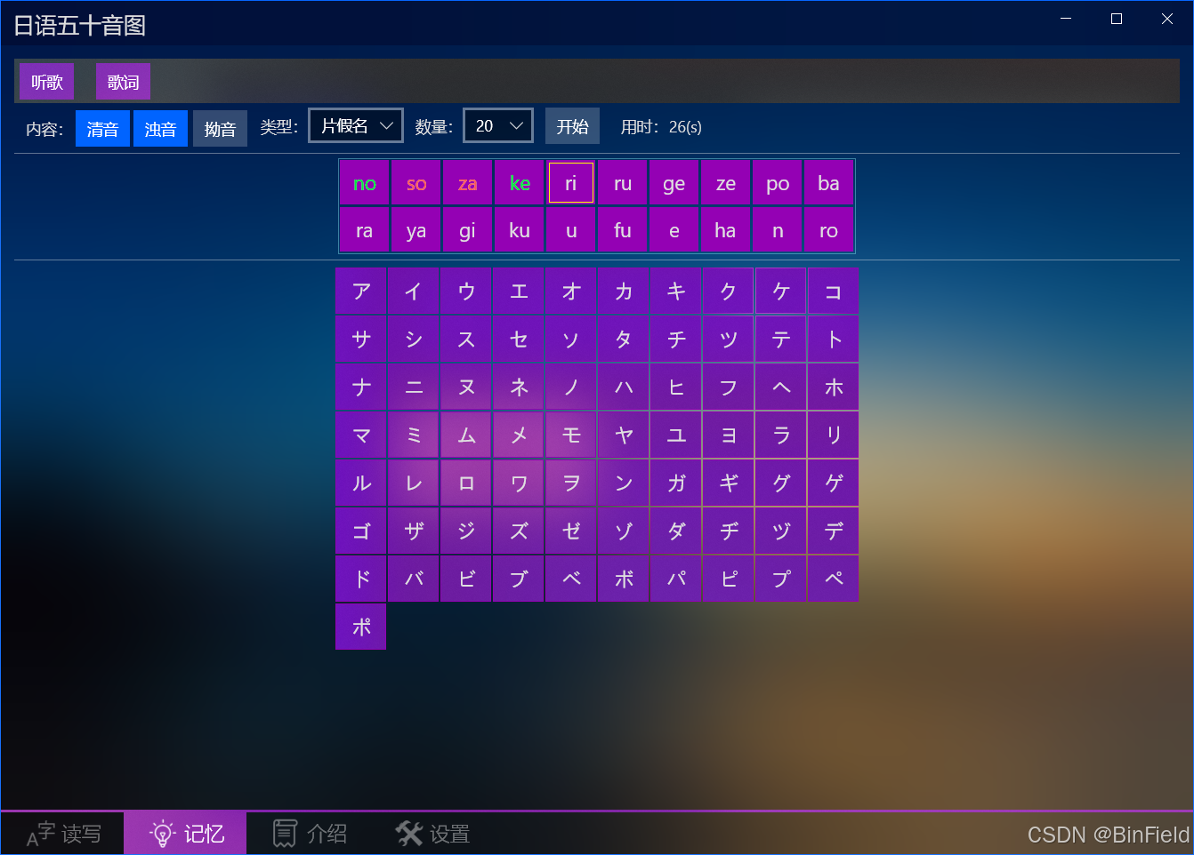 顺序测试需要按50音图排列顺序依次点击各个字母。