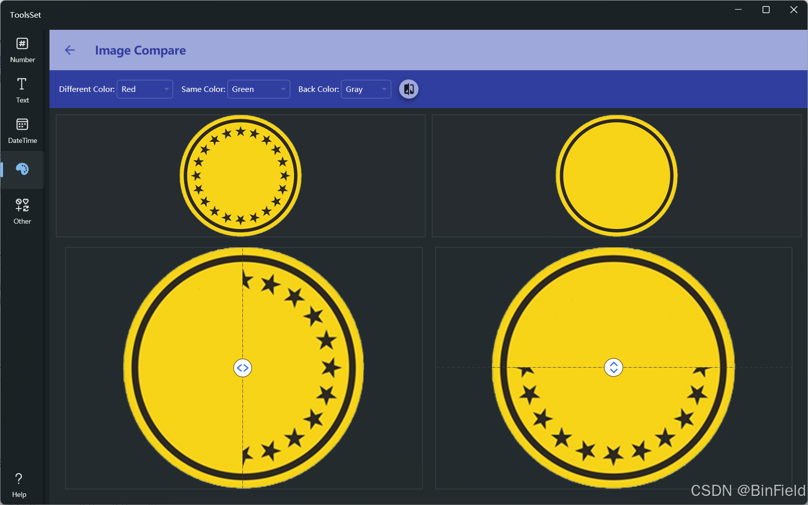 Windows应用ToolsSet介绍https://blog.youkuaiyun.com/BinField/article/details/145898264ToolsSet中Media菜单下的Image Compare是一个图片比较工具,可以打开两张图片进行比较并显示其不同之处。