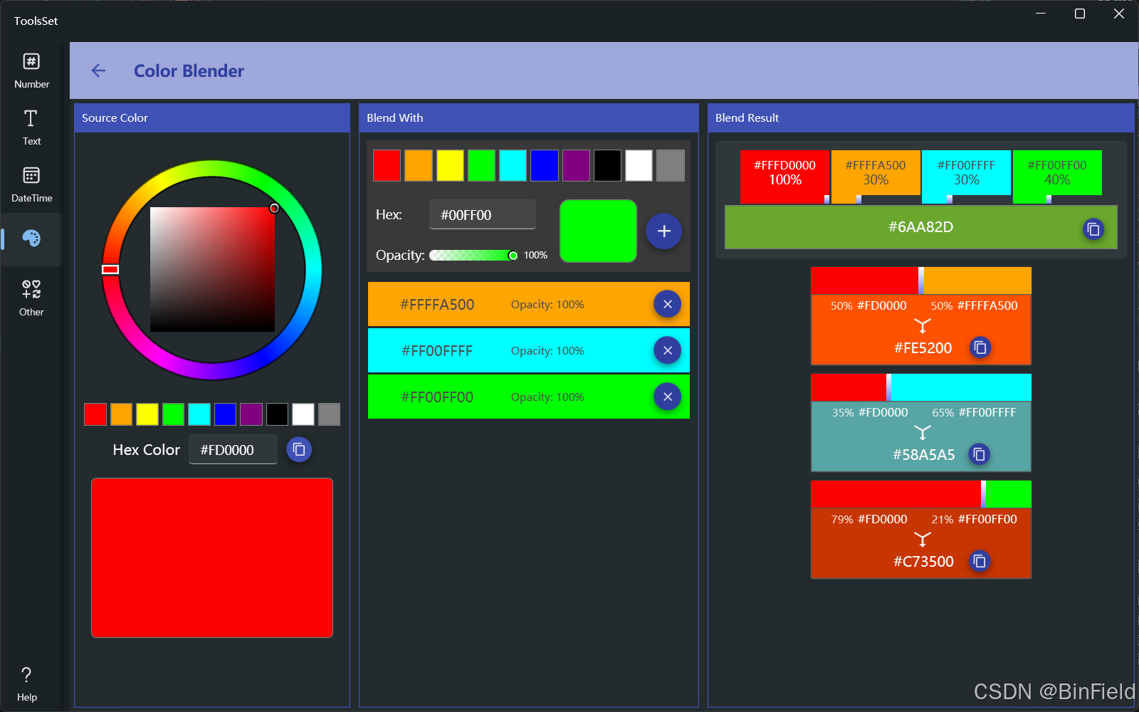 https://blog.youkuaiyun.com/BinField/article/details/145898264其中Media菜单中的Color Blender是一个颜色混合工具,可以将两个或多个颜色混合并查看混合后的结果。
