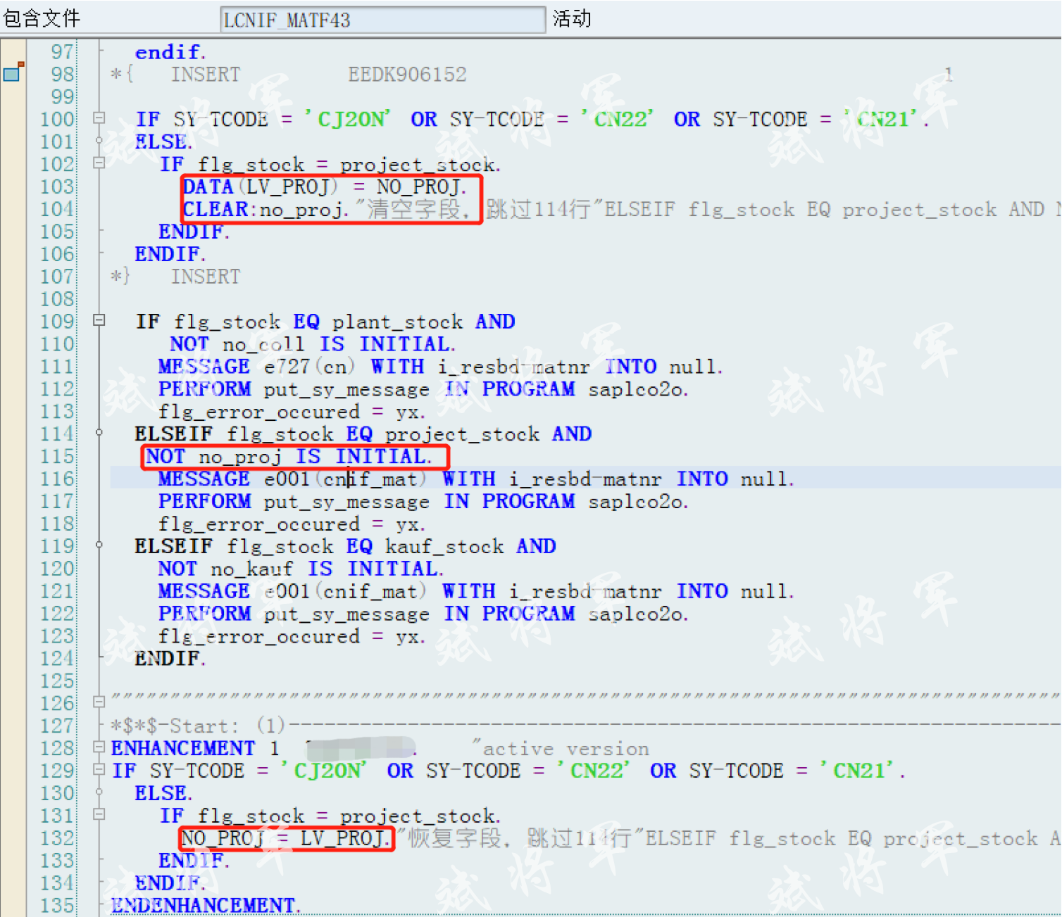 此处没有隐式增强,只能增加代码将变量清空,跳过e001(cnif_mat)的消息