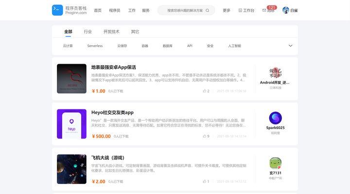 我们经常会收到客户这类需求:定制化较少,预算不高,工期更为紧急。由此作为切入点,我们上线了“资源商城”业务,在满足客户这类需求的同时,也为平台中的开发者们创造了一个新的机会。如果您有已经完成的作品,可以将源码上传到“资源商城”中进行标价售卖;如果您需要一个成品,可以在“资源商城”中挑选购买。这种交易模式,节省了时间、降低了预算,让客户与开发者们更容易实现“双赢”。