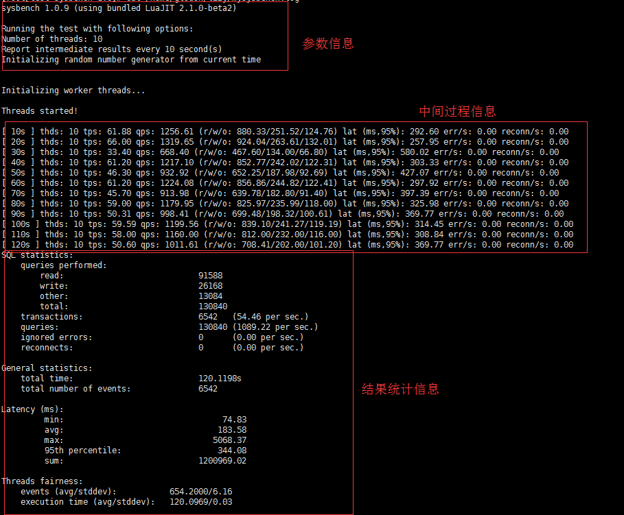 sysbench ./tests/include/oltp_legacy/oltp.lua --mysql-host=192.168.10.10 --mysql-port=3306 --mysql-user=root --mysql-password=123456 --oltp-test-mode=complex --oltp-tables-count=10 --oltp-table-size=100000 --threads=10 --time=120 --report-interval=10 run >> /home/test/mysysbench.log
