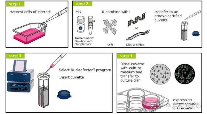 Nucleofector核转系统可用于免疫细胞、干细胞、神经细胞、内皮细胞等较难转染的原代细胞和各类细胞系中,其不依赖于病毒感染、不依赖于细胞有丝分裂,可加快基因表达,已成功转染1200余种细胞系、130余种原代细胞,多数细胞系转染效率可高达50-70%,部分原代细胞转染效率可超过90%。目前,LONZA 4D-Nucleofector已大量应用于CAR-T细胞的研究中。