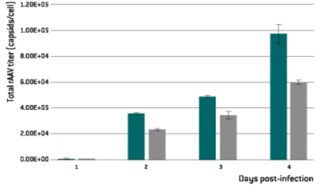 为了满足基因疗法市场的需求,Lonza开发了TheraPEAKTM SfAAV TM培养基。与检测的其它培养基相比,这种化学成分明确的培养基可使Sf9细胞生长速度更快、性能稳定和一致性更高。与已上市的主要培养基相比,细胞生长速率更快可使感染提前一天发生,SfAAV可提高细胞外AAV的生成量、乳酸盐含量更低和铵蓄积量更低,为生产健康的AAV创造了更好的环境。