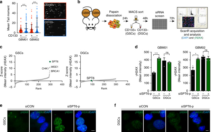 基于此,研究人员发现了胶质母细胞瘤的潜在靶点——SPT6,并证实了SPT6丢失诱导的DNA双链断裂(DSB)是胶质母细胞瘤特异性的。该研究于2020年9月发布在Nature Communications上。