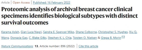 2022年3月7日报道,近日,发表在Nat Commun上的一篇名为"Proteomic analysis of archival breast cancer clinical specimens identifies biological subtypes with distinct survival outcomes" 利用蛋白质组学分析描述了临床适用的乳腺癌异质性,确定了潜在的生物标志物和治疗靶点,为临床乳腺癌分类提供了理论支撑。
