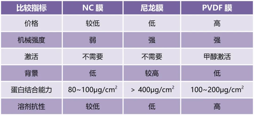 WB转印膜有硝酸纤维素膜(NC)、尼龙膜和PVDF膜,目前常用的有NC膜和PVDF膜。在转膜过程中,膜的选择非常重要,PVDF膜有各种孔径尺寸,最常见的是0.45μm和0.2μm,对于蛋白理论大小大于20KDa,一般建议使用0.45μm的PVDF膜,反之选择0.22μm的PVDF膜。