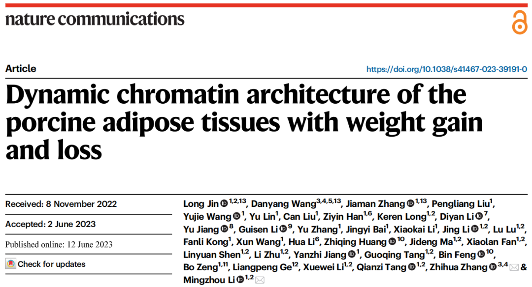 Jin L, Wang D, Zhang J, et al. Dynamic chromatin architecture of the porcine adipose tissues with weight gain and loss. Nat Commun. 2023 Jun 12;14(1):3457. doi: 10.1038/s41467-023-39191-0. PMID: 37308492; PMCID: PMC10258790.