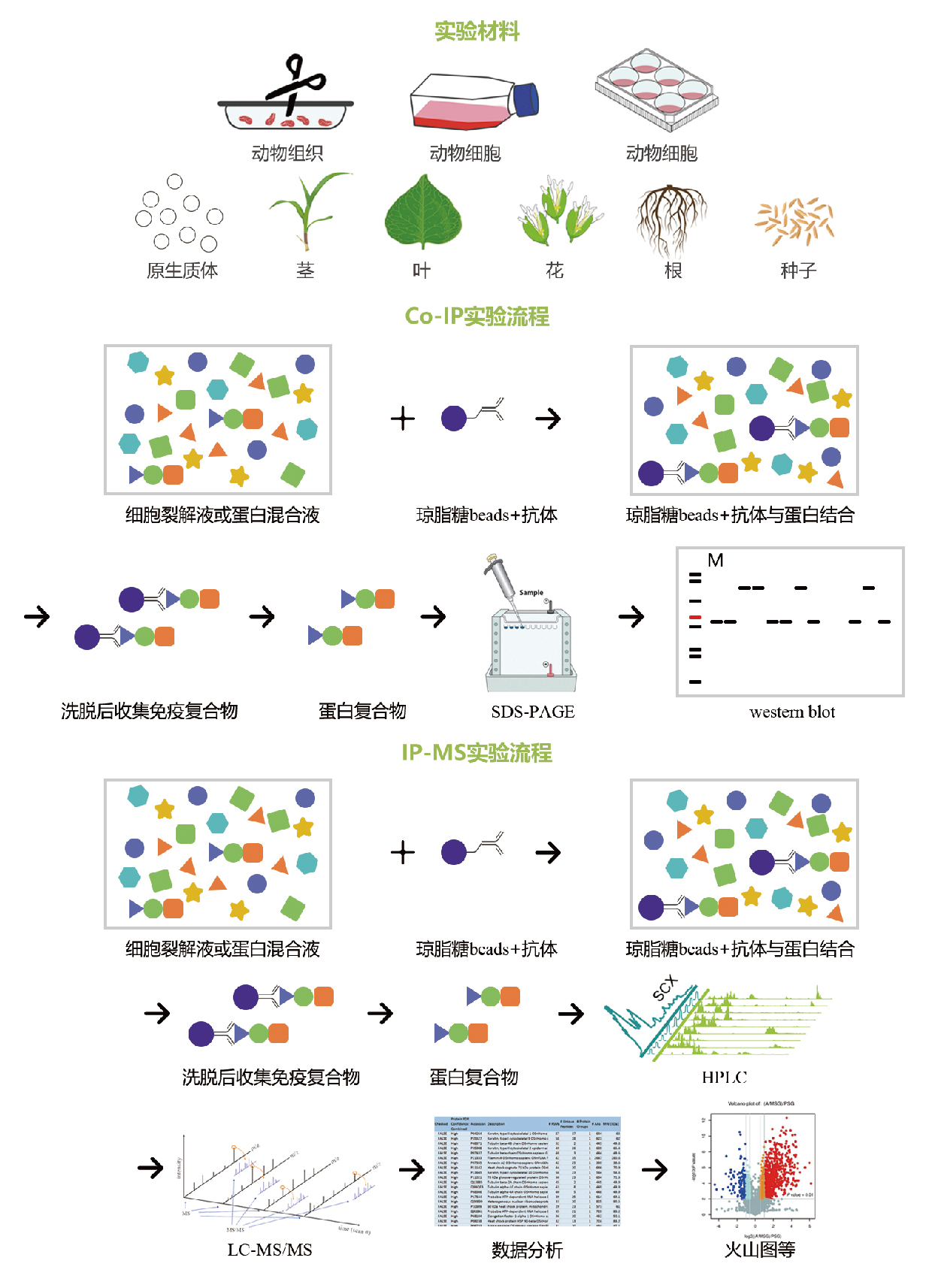 免疫共沉淀(Co-Immunoprecipitation,Co-IP)是以抗体和抗原之间的专一性作用为基础的用于研究蛋白质相互作用的经典方法,是确定两种蛋白质在完整细胞内生理性相互作用的有效方法。