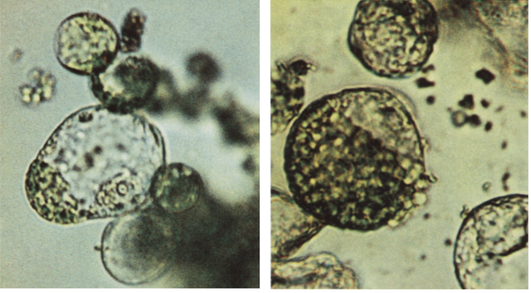 图1 由番茄和马铃薯原生质体融合产生的原生质体(Melchers et al., 1978)。