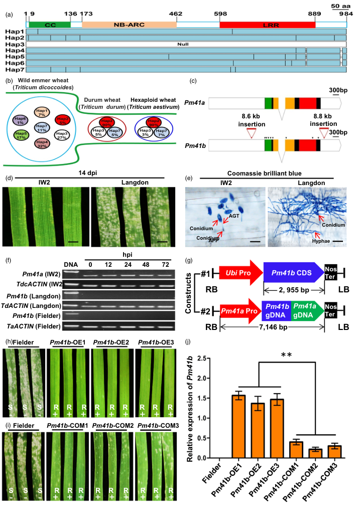 2020年5月,中国科学院遗传与发育生物学研究所刘志勇课题组联合中国农业科学院作物科学研究所李洪杰课题组在New Phytologist杂志上发表了一篇题为“A CNL protein in wild emmer wheat confers powdery mildew resistance”的研究论文,该研究挖掘了一个来自WEW的白粉病抗性基因Pm41,并对其进行了功能验证,证实了Pm41在小麦中抗Bgt的功能。