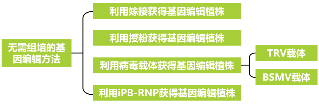 病毒是一种理想的外源DNA/RNA传递及瞬时表达的工具。经过工程化改造的植物病毒载体可用于多种基因编辑元件的递送,以实现高效、快捷、多样化的植物基因编辑。下面举例的文献中,作者主要是借助病毒将sgRNA转入表达Cas9的转基因材料中来实现基因编辑的,在基因编辑的过程中无需组织培养。