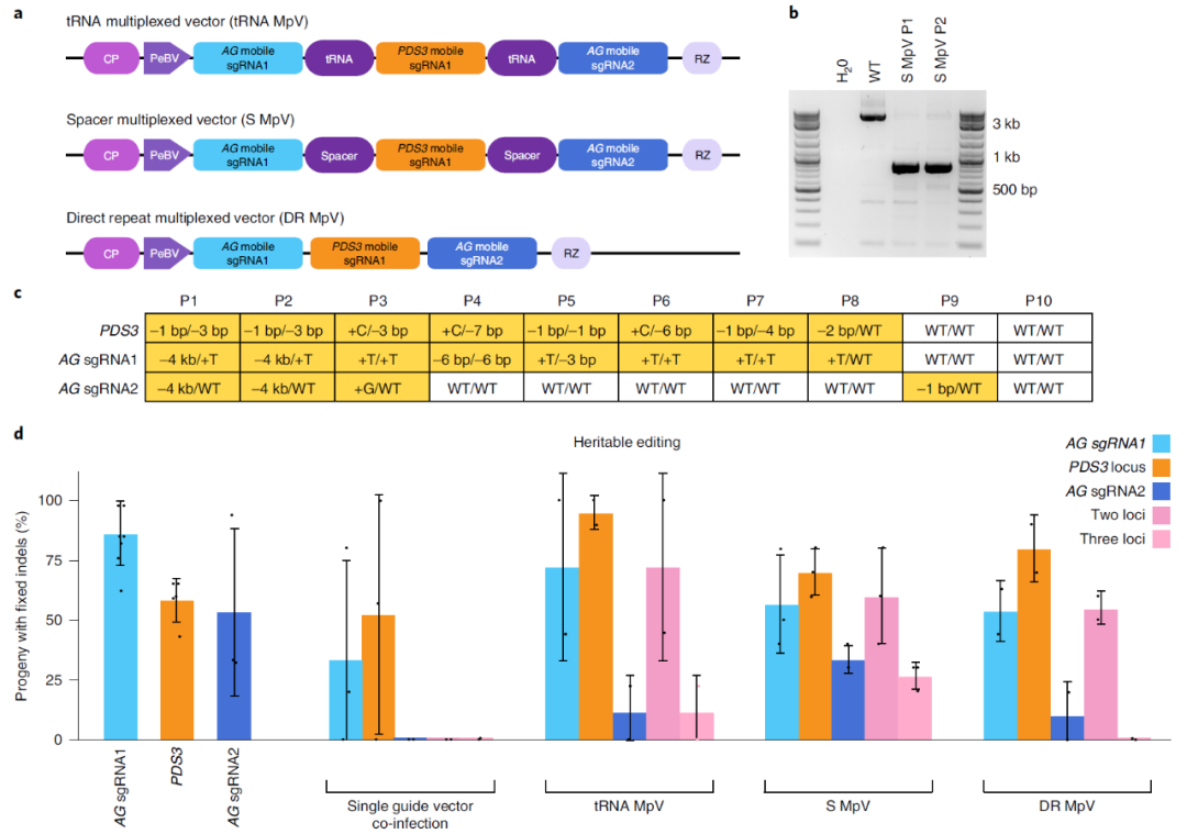 2020年6月,明尼苏达大学Daniel F. Voytas课题组在Nature Plants杂志上发表了一篇题为“Multiplexed heritable gene editing using RNA viruses and mobile single guide RNAs”的研究论文,该研究开发了一种使用TRV载体表达可移动的sgRNA,在植物中实现高效基因编辑的方法。
