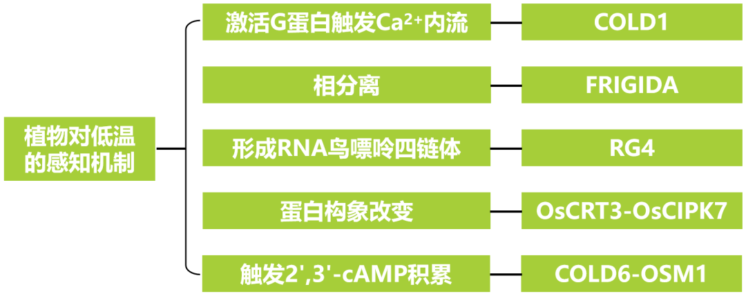 低温胁迫是影响植物生长、发育及作物产量的重要环境胁迫因素之一。植物通过感知低温信号并快速启动低温应答,可以降低低温胁迫对其造成的损伤。在本期的推文中小远主要是给大家介绍了科学家们发现的一些植物低温感受器,涉及的机制包括:激活G蛋白触发Ca2+内流、相分离、形成RNA鸟嘌呤四链体、蛋白构象改变以及触发2',3'-cAMP积累等,由于篇幅所限,还有很多有关植物低温感受器的研究成果并未在本次推文中为大家呈现,感兴趣的小伙伴可以查阅相关资料进一步深度学习哦!随着科研的不断深入,相信科学家们还会挖掘出更多的低温感受器,并且将这些成果有效的应用到分子育种中。