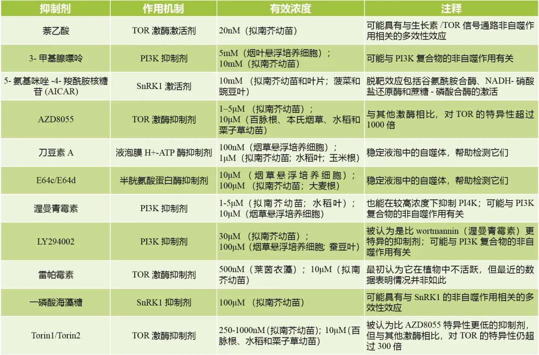 表1 植物自噬研究中常用的抑制剂和激活剂(Marshall Richard S. and Vierstra Richard D., 2018)。