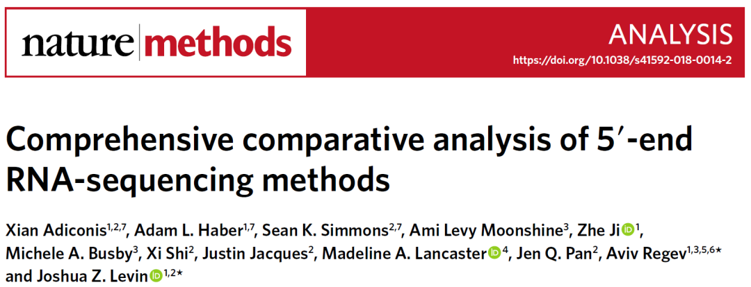 Adiconis X, Haber A L, Simmons S K, et al. Comprehensive comparative analysis of 5′-end RNA-sequencing methods[J]. Nature methods, 2018, 15(7): 505-511.