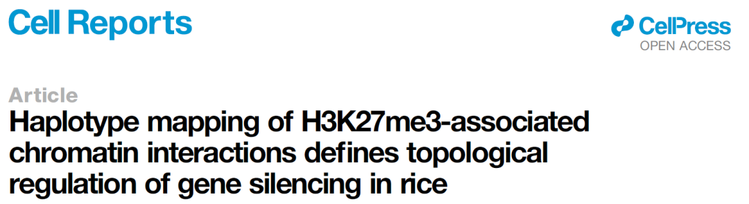 Ouyang W, Zhang X, Guo M, et al. Haplotype mapping of H3K27me3-associated chromatin interactions defines topological regulation of gene silencing in rice[J]. Cell Reports, 2023, 42(4).