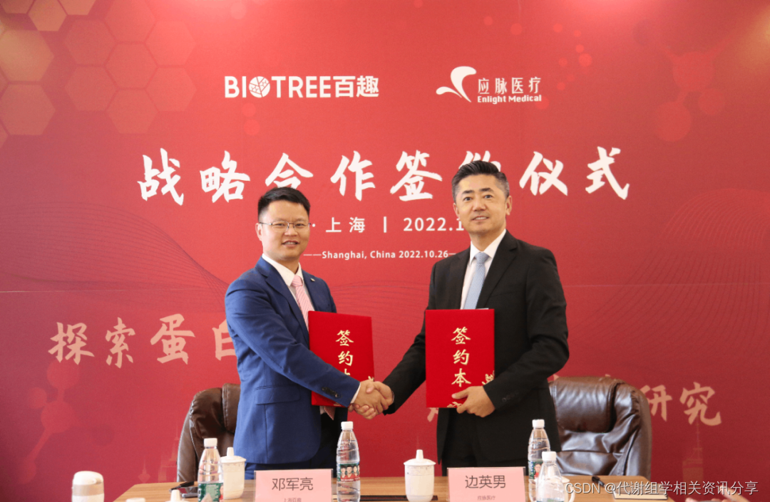 10月26日,上海百趣生物医学科技有限公司(以下简称:百趣生物)与应脉医疗科技(上海)有限公司(以下简称:应脉医疗)在上海举行战略合作签约仪式。