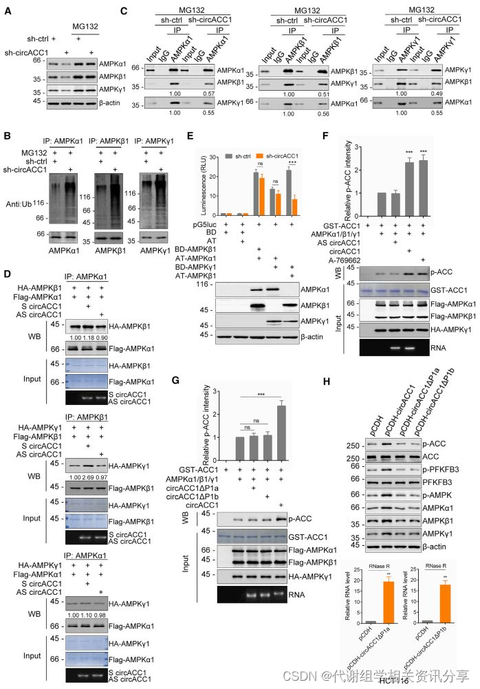 3.CircACC1直接与AMPK的 β 和 γ 亚基结合