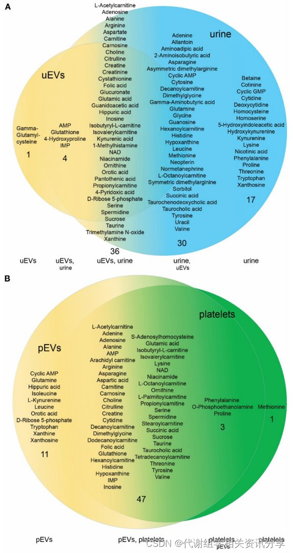 4. 尿液、血小板EVs代谢物的重叠及差异