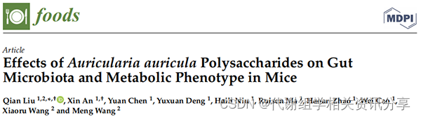 文章标题:Effects of Auricularia auricula Polysaccharides on Gut Microbiota and Metabolic Phenotype in Mice