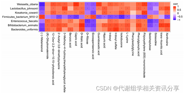 图5. 肠道菌群和代谢物之间的相关性分析