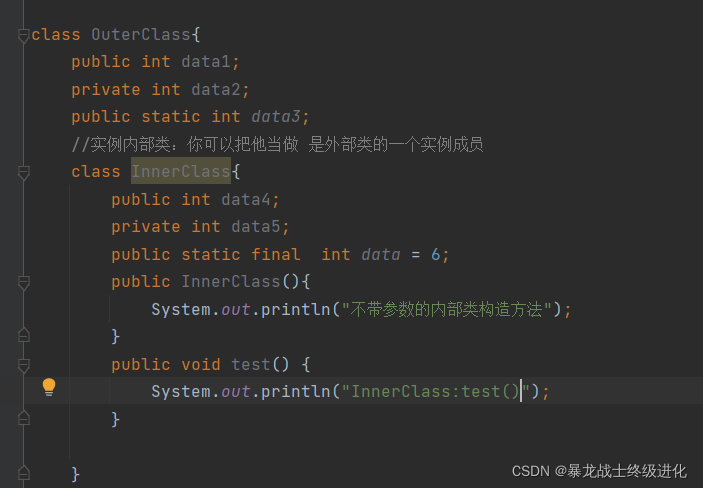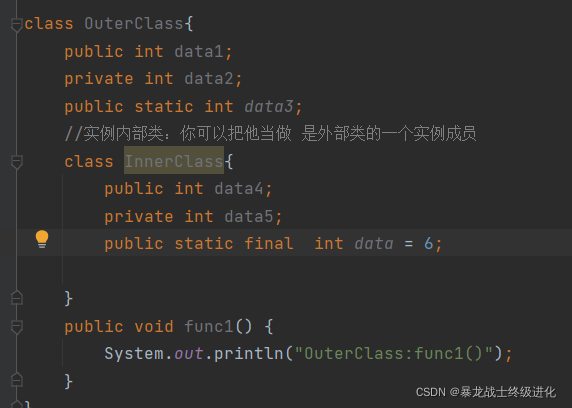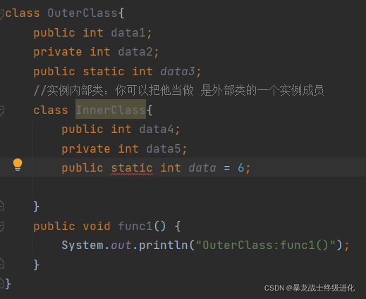 1.在实例内部类当中 不能定义一个静态的成员变量!非要定义,只能定义1个静态常量