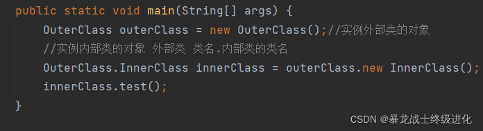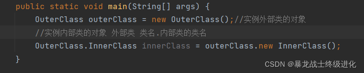 外部类名.内部类名 变量 = 外部类对象的引用.new 内部类();