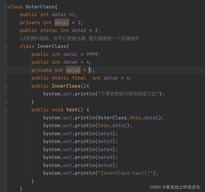 3.实例内部类当中 如果包含了和外部类相同的成员变量,那么如何在实例内部类当中访问?