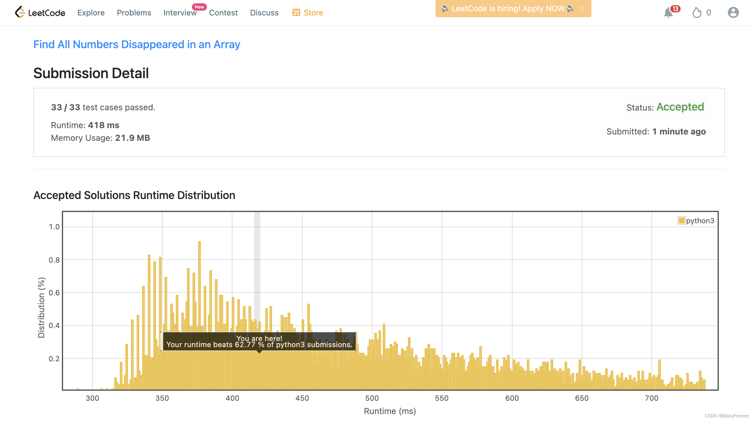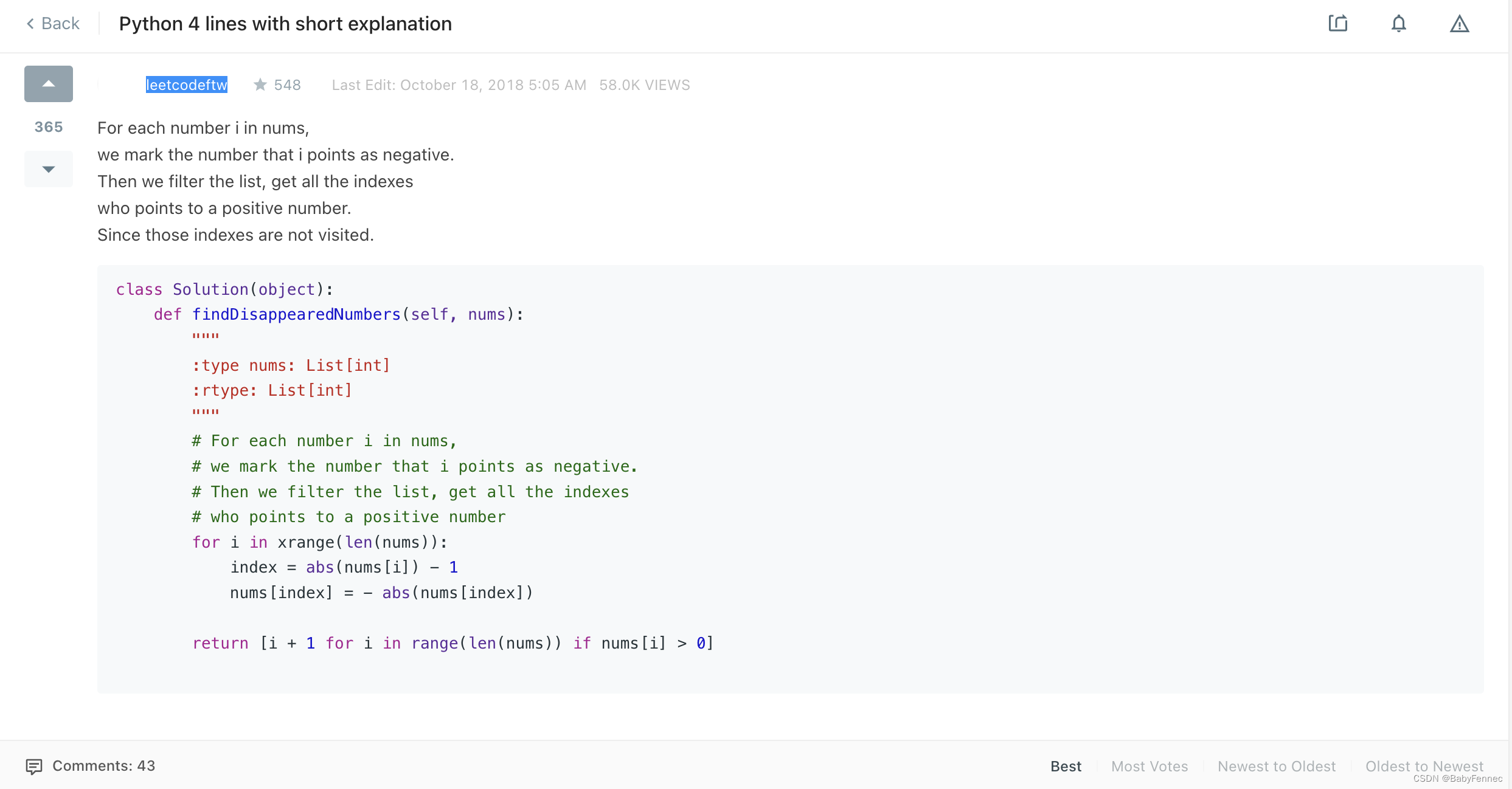 但是这种解法因为新创建了一个set(range(1, len(nums)+1)),所以space complexity上不合要求。