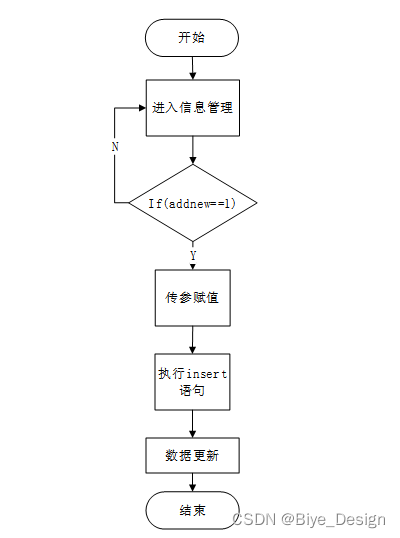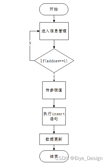 管理员可以对个人资料、用户管理、课程分类、课程信息、学生选课、课程成绩、通知公告进行信息的添加,用户可以对自己权限内的信息进行添加,输入信息后,系统会自行验证输入的信息和数据,若信息正确,会将其添加到数据库内,若信息有误,则会提示重新输入信息,添加信息流程如图3-4所示。