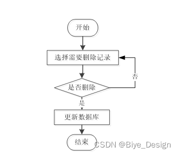 管理员可以对个人资料、用户管理、课程分类、课程信息、学生选课、课程成绩、通知公告进行信息的删除,对要删除的信息进行选中后,点击删除按钮,系统会询问是否确定,若点击确定,则系统会删除掉选中的信息,并在数据库内对信息进行删除,删除信息流程图如图3-6所示。