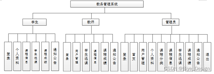 系统架构图属于系统设计阶段,系统架构图只是这个阶段一个产物,系统的总体架构决定了整个系统的模式,是系统的基础。教务管理系统的整体结构设计如图4-2所示。