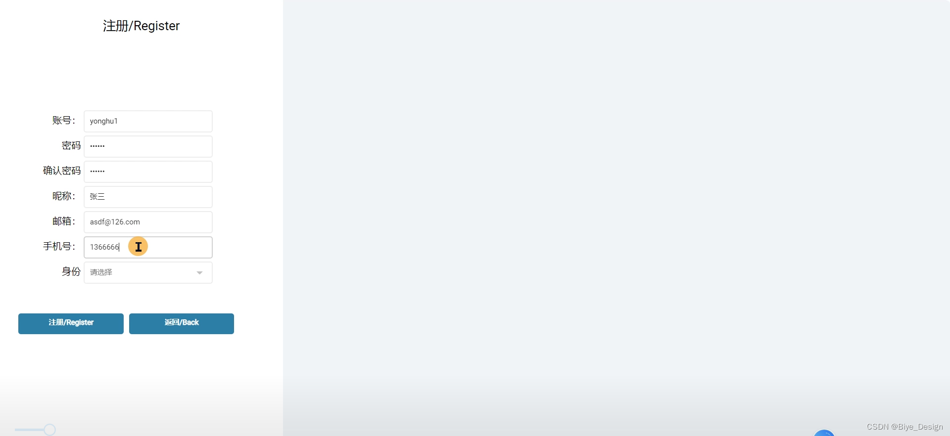 用户登录/注册成功之后可以修改自己的基本信息。修改页面的表单中每一个input的name值都要与实体类中的参数相匹配,在用户点击修改页面的时候,如果改后用户名与数据库里面重复了,页面会提示该用户名已经存在了,否则通过Id来查询用户,并将用户的信息修改为表单提交的数据。