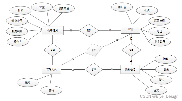 下面是整个小区物业管理系统中主要的数据库表总E-R实体关系图。