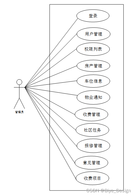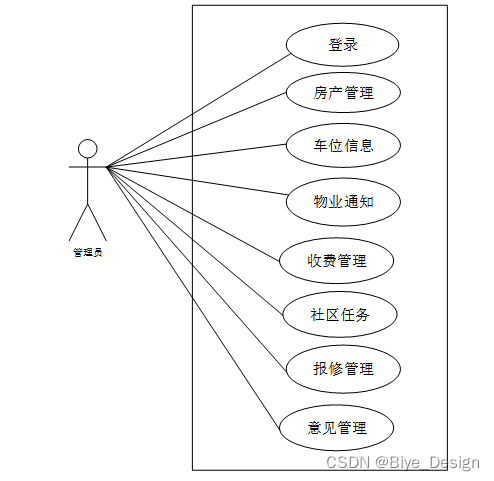 小区物业管理系统中管理员角色用例图如图3.2所示: