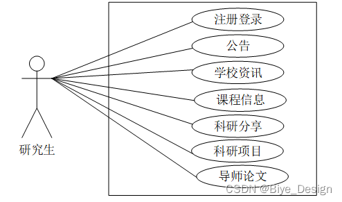 通过构建用例图,来更好的展示出研究生这个角色所有的功能,如下。