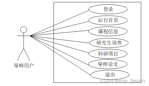通过构建用例图,来更好的展示出导师用户这个角色所有的功能,如下。
