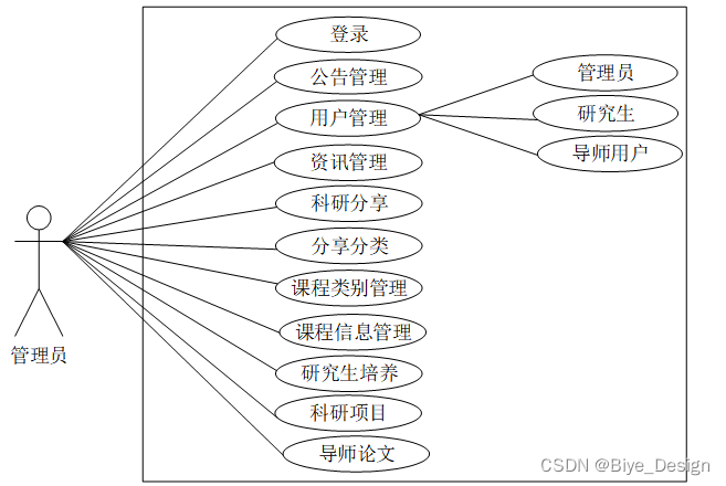 通过构建用例图,来更好的展示出管理员这个角色所有的功能,如下。
