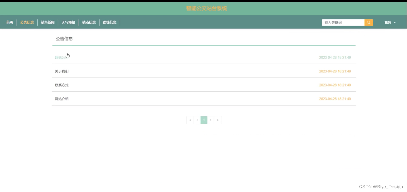 (2)查看智能公交站台系统的首页信息:智能公交站台系统的首页信息包含了:首页、公告信息、站台新闻、天气预报、站点信息、路线信息等。