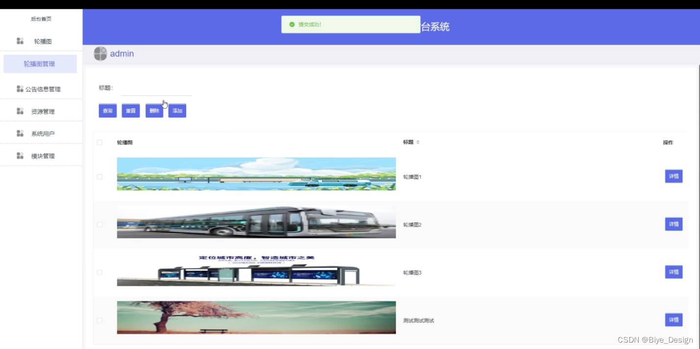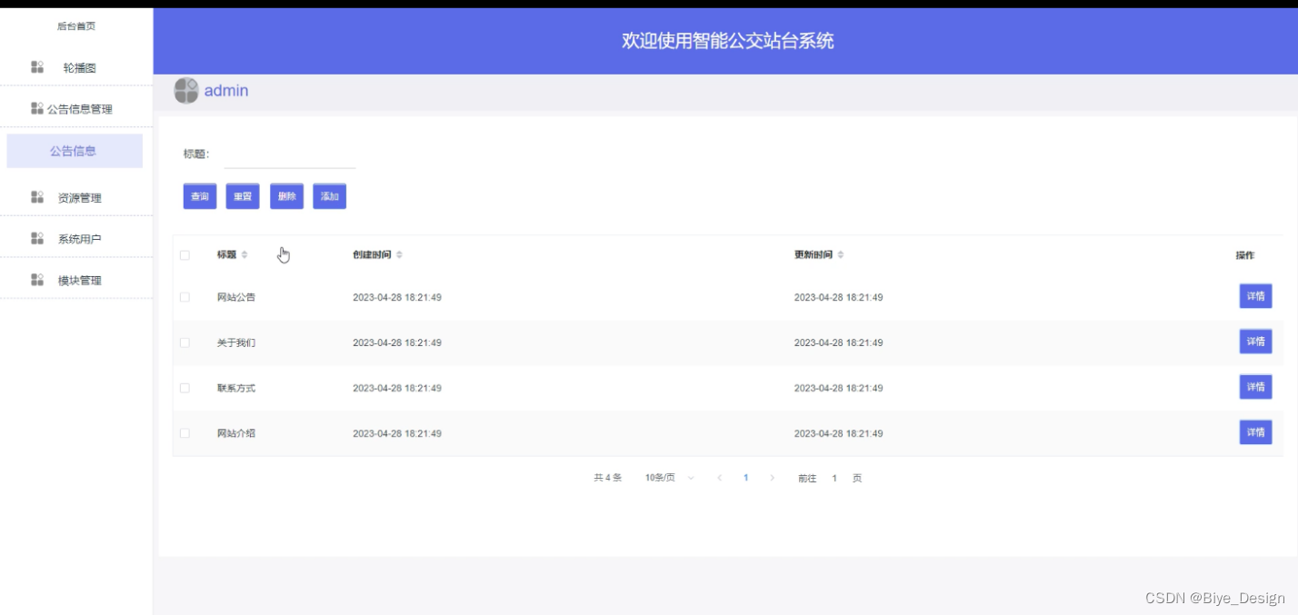 (7)系统管理:管理员在后台可以对智能公交站台系统中系统管理中的公告信息、轮播图进行增删改查操作。