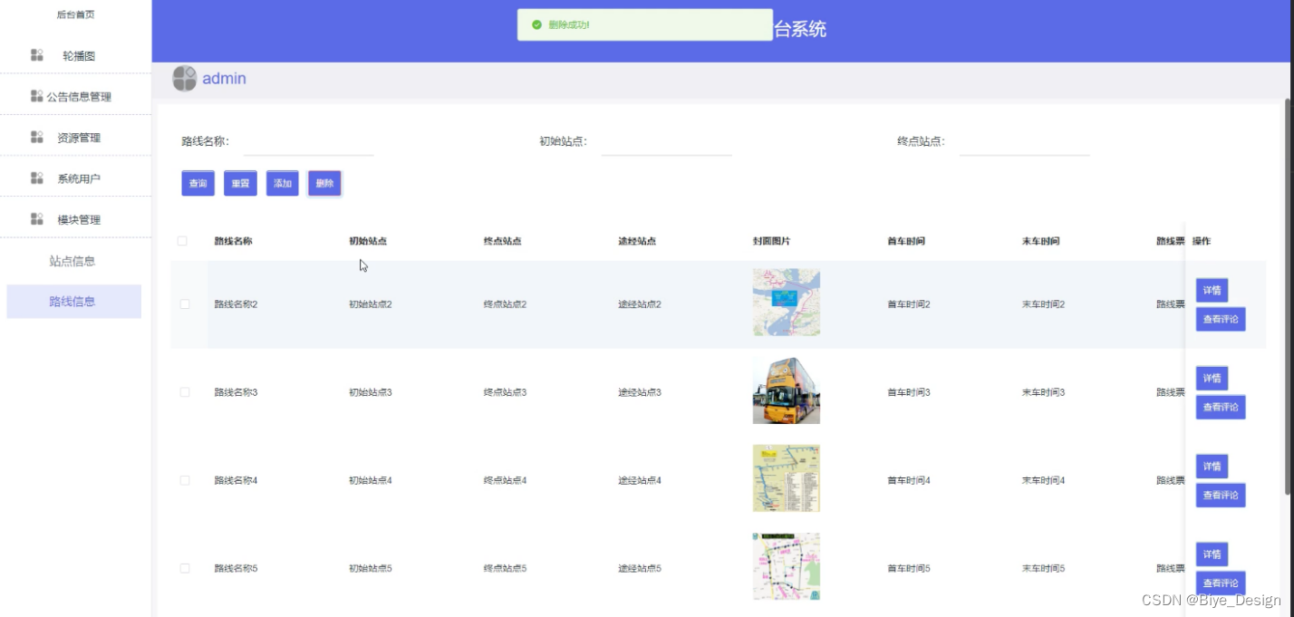 (3)路线信息管理:管理员在后台可以对智能公交站台系统中路线信息进行增删改查。