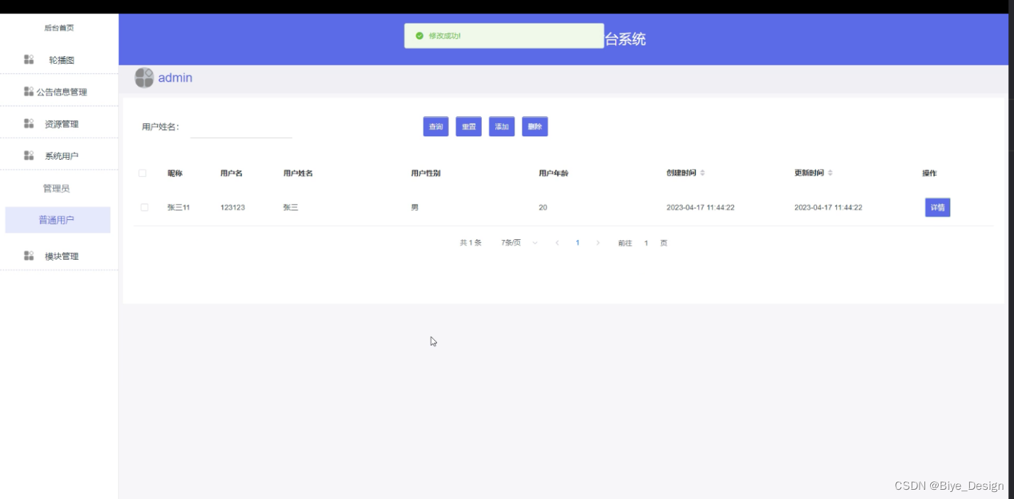 (1)管理员可以在个人中心中自由地更新和查看个人信息。
