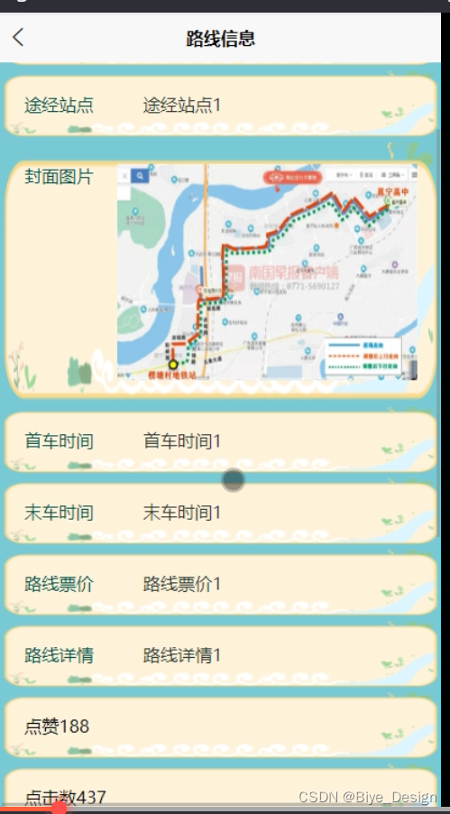 点击“路线信息”可以查看到管理员后台发布的路线信息,选择某一信息进入详情后可以查看到管理员者发布的一些路线信息,选择某一信息进入详情后可以对路线信息进行搜索信息查看,也可以查看路线信息导航图。路线信息界面如下图4-10所示。